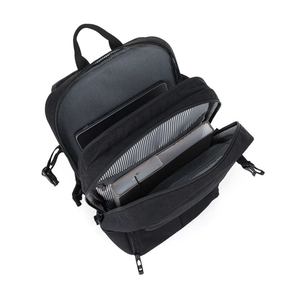 - První komora je polstrovaná, ideální na notebook nebo další elektroniku.