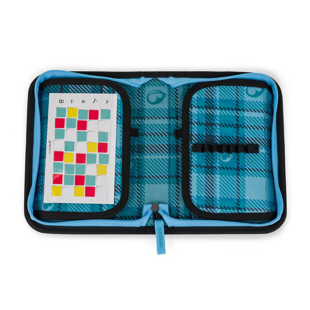 K pouzdru přibalíme tabulku pro rozvrh hodin a set samolepek, kterými si děti mohou kreativně vylepit celý školní týden. Například hodinu matiky si označí symbolem pravítka.
