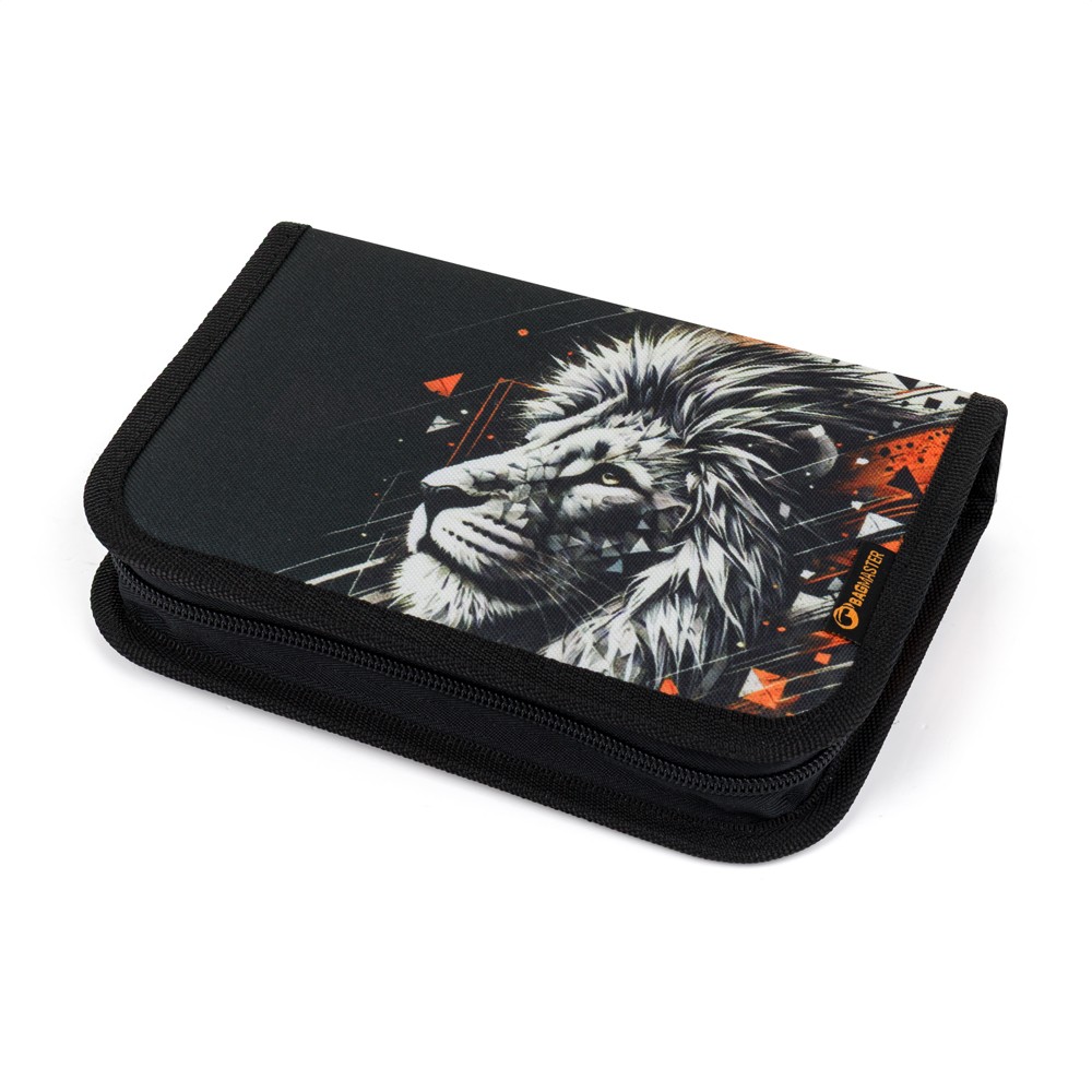 Penál se lvem pro malé školáky, kteří se chystají na první stupeň. Jedna přehledná komora s chlopněmi plná pružných gumových úchytů na psací potřeby. Kvalitní kovový zip a průhledná kapsa na rozvrh se samolepkami, který dostanete jako dárek.