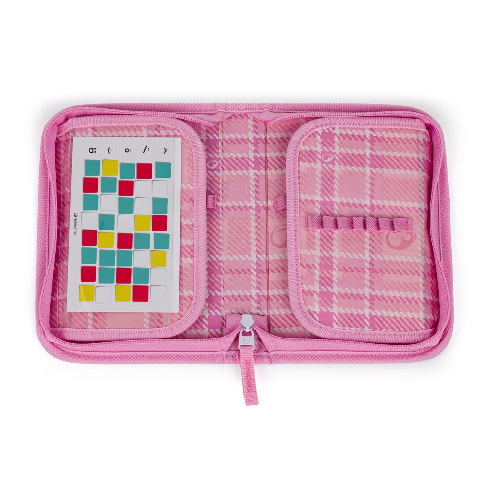 K pouzdru přibalíme tabulku pro rozvrh hodin a set samolepek, kterými si děti mohou kreativně vylepit celý školní týden. Například hodinu matiky si označí symbolem pravítka.