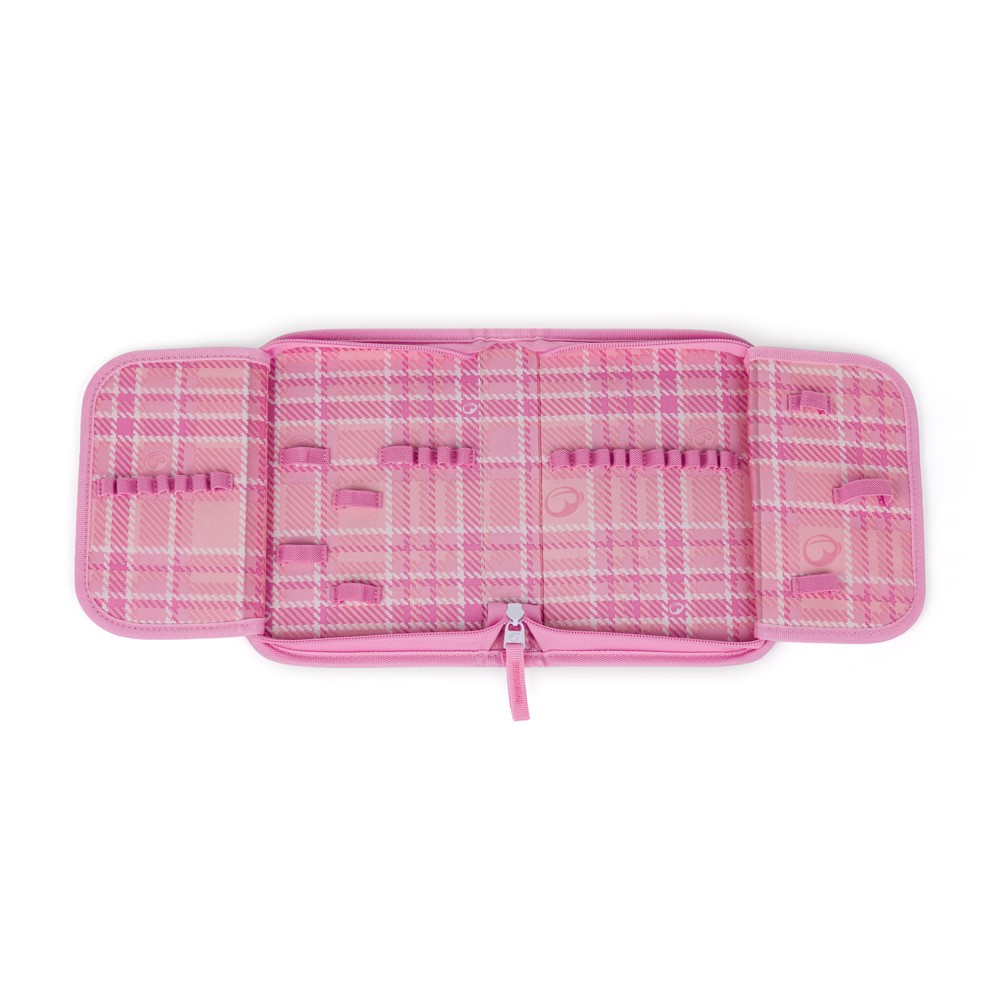 Penál je přehledný. Do gumových úchytek si hezky uspořádáš pera, pastelky i barevné fixky. Nezapomeň tužky před vyskládáním do pouzdra ořezat, ať nedostaneš černý puntík.