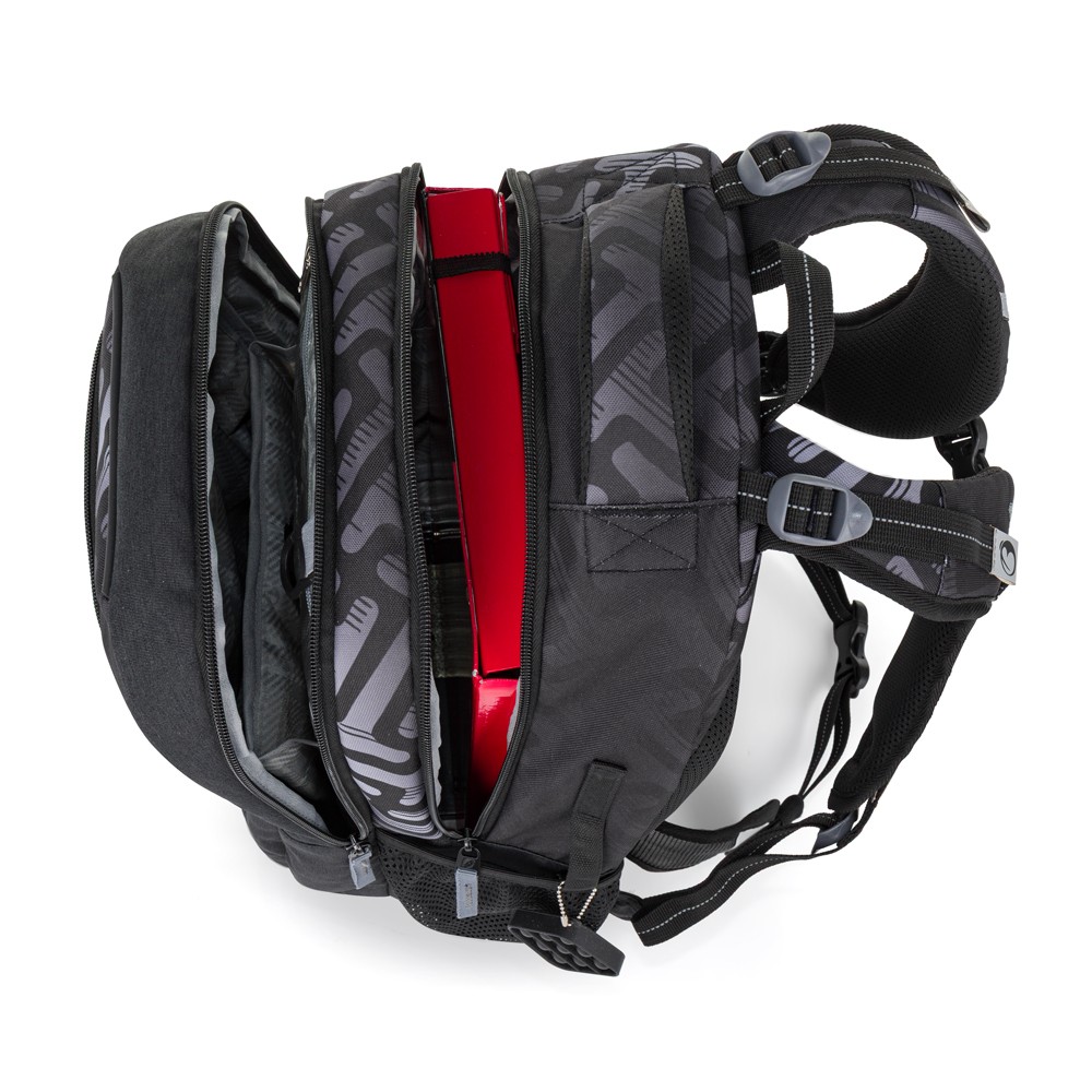 Správné držení těla při chůzi podporuje i vnitřní kompresní kapsa v hlavní komoře. Je určena na nejtěžší učebnice a také slouží k udržení těžiště co nejvíc u zad.