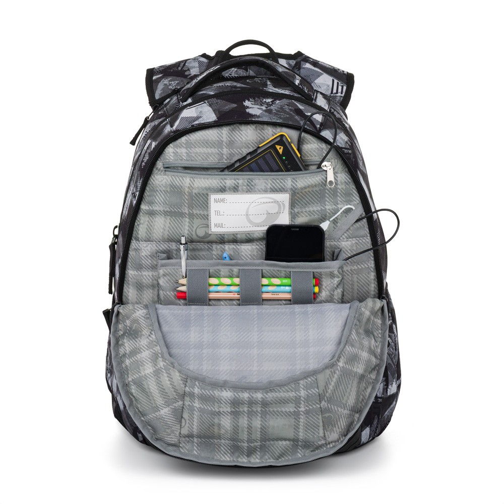Extra prostorný a pohodlný parťák pro všechny starší kluky nejen do školy. Je vymakaný do nejmenšího detailu: polstrovaná kapsa na notebook, zadní bezpečnostní kapsa na doklady a reflexní prvky. Navíc má měkce polstrované zadní výztuže a ramenní popruhy.