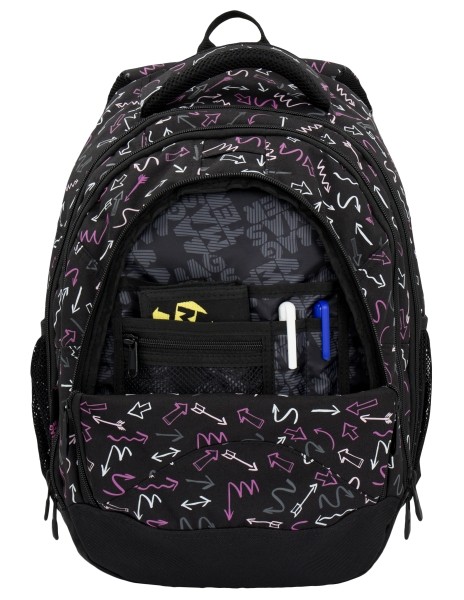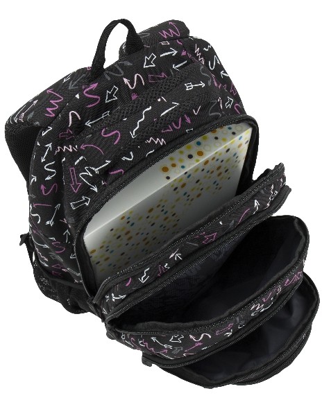 Dívčí studentský batoh ENERGY 6 má tři komory. Hlavní komora je velmi prostorná vhodná na školní desky, sešity, tak na učebnice. Uvnitř hlavní komory je velká kapsa s pružným lemem, vhodná např. na separaci sešitů. desek nebo učebnic - rozměry kapsy: 23 x 25 cm x 4 cm).