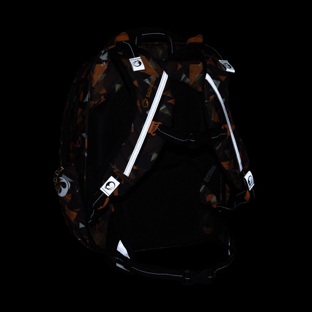 Batoh má spoustu výrazných reflexních prvků, díky kterým bude malý školák v bezpečí (ze přední strany, po stranách i zezadu na ramenních popruzích). Přesvědčit se můžete tak, že batoh vyfotíte s bleskem.